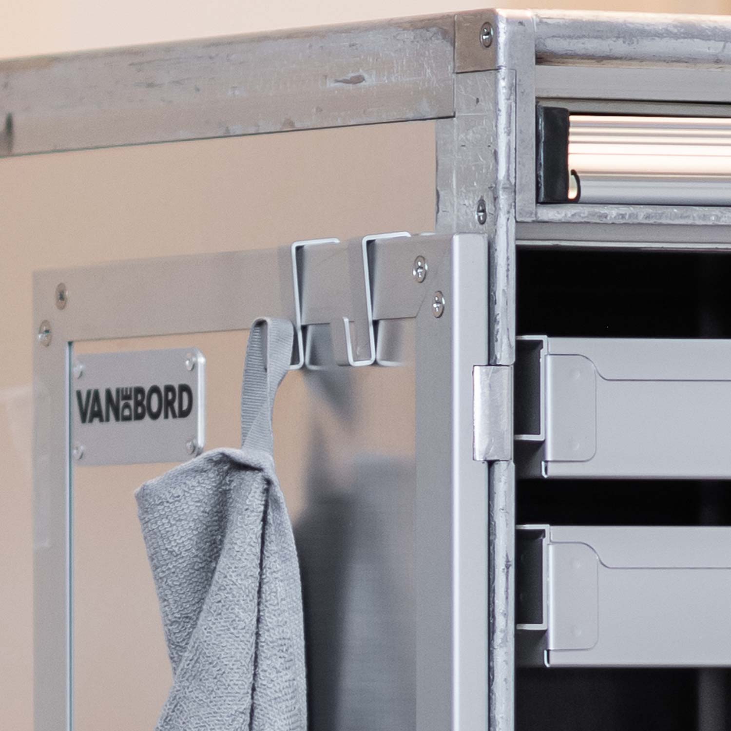Passend zur edlen Aluminium Optik Deines Flugzeugtrolleys kommen diese robusten Haken aus dem gleichen Material zum Einsatz. Sie bieten Platz zum Aufhängen von unterschiedlichen Utensilien. Als Ergänzung zum Küchentrolley können zum Beispiel Kellen, Pfannen oder Geschirrtücher an den Haken befestigt werden.