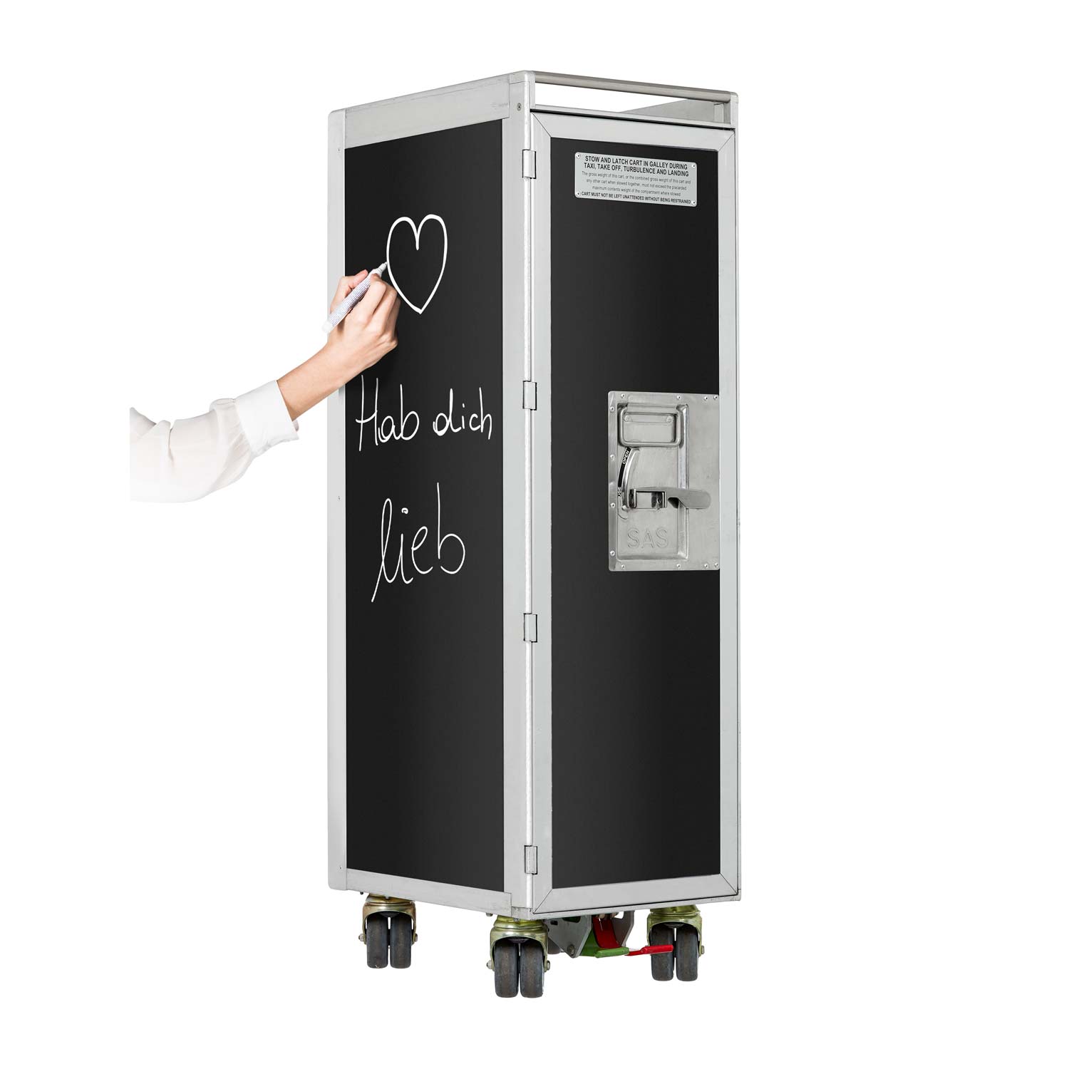 Der himmlische Flugzeugtrolley Oldschool ist perfekt für den Bodeneinsatz. Die schwarze, wiederbeschreibbare Tafel ist rund um den Trolley angebracht und hebt das Modell von anderen ab – ein echtes Stilelement für Deine Räume.