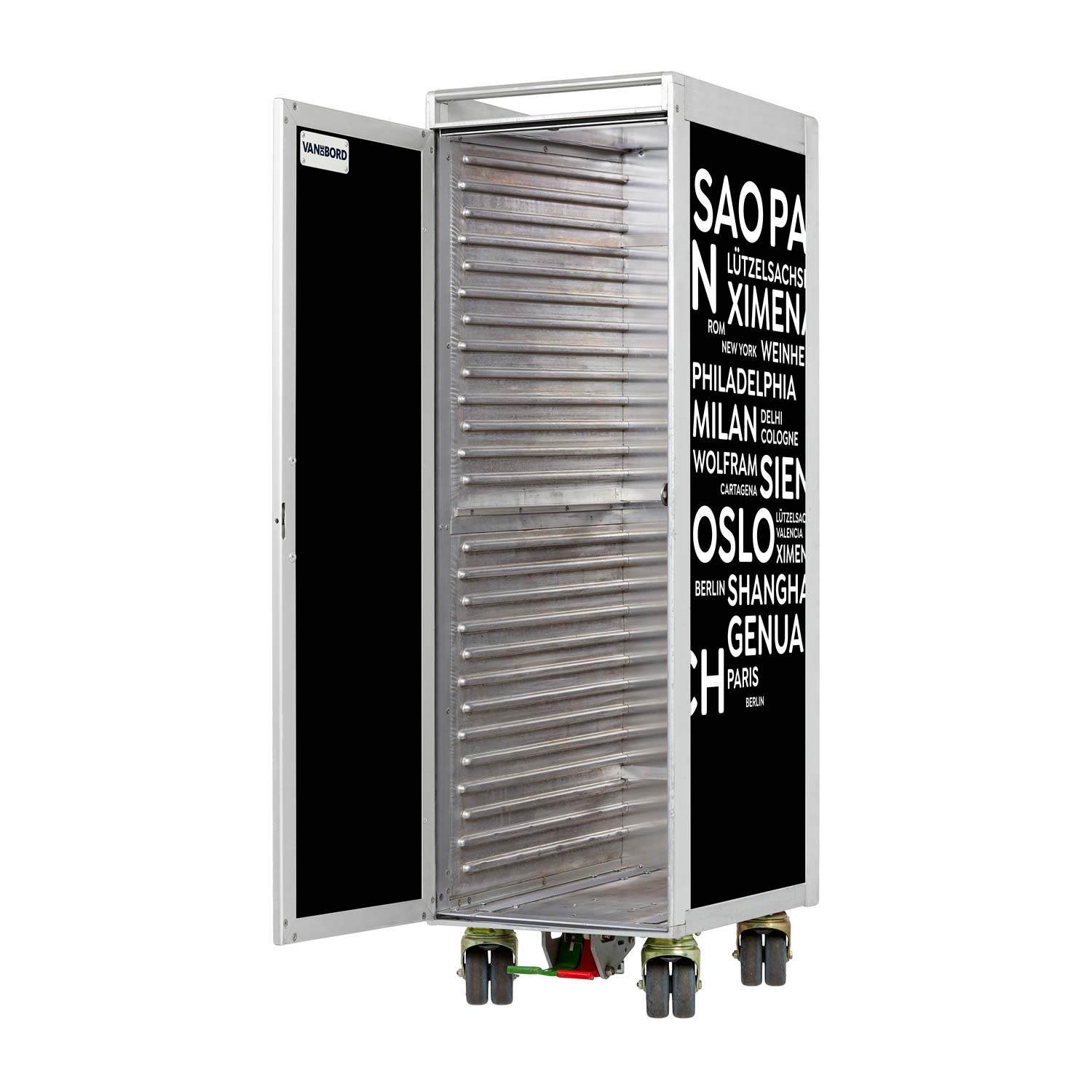 Restaurierte Trolleys sind gebrauchte Flugzeugtrolleys, die in einem aufwändigen Verfahren generalüberholt werden. Wie genau? Dafür bringen wir für Dich alles in Bewegung: Seitenflächen sowie Türseiten erhalten von uns neue hochwertige Aluminium-Panels. Auf Wunsch setzen wir Acrylglas in die Tür ein. Direkt danach bringen wir das Design an den Flugzeugtrolley, entweder durch Laminieren, im Direktdruckverfahren oder als hochwertige Pulverbeschichtung. Die Original-Patina im Aluminiumrahmen, an Schloss, Rollen und Innenseiten bleibt davon unberührt. Einfach himmlisch, oder?